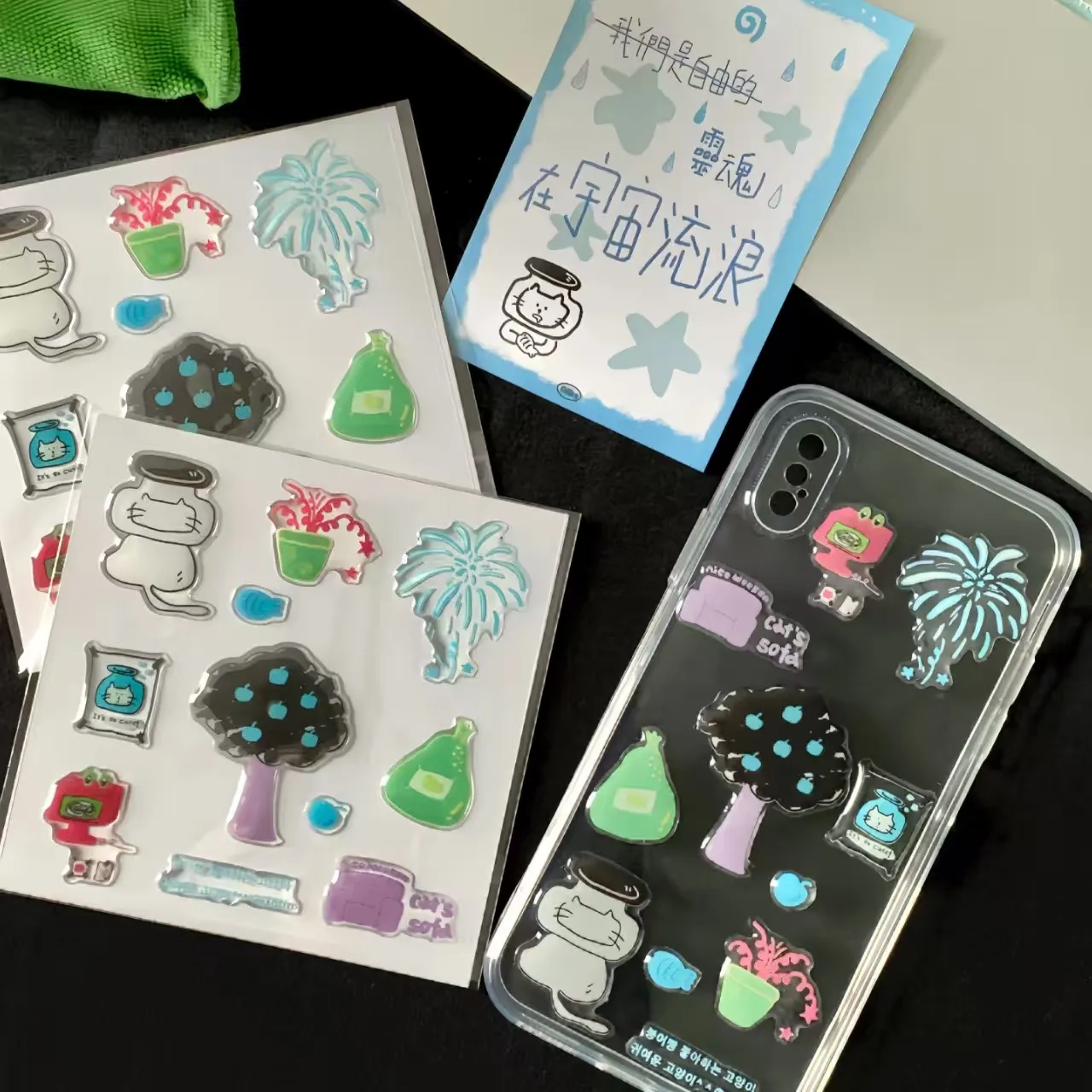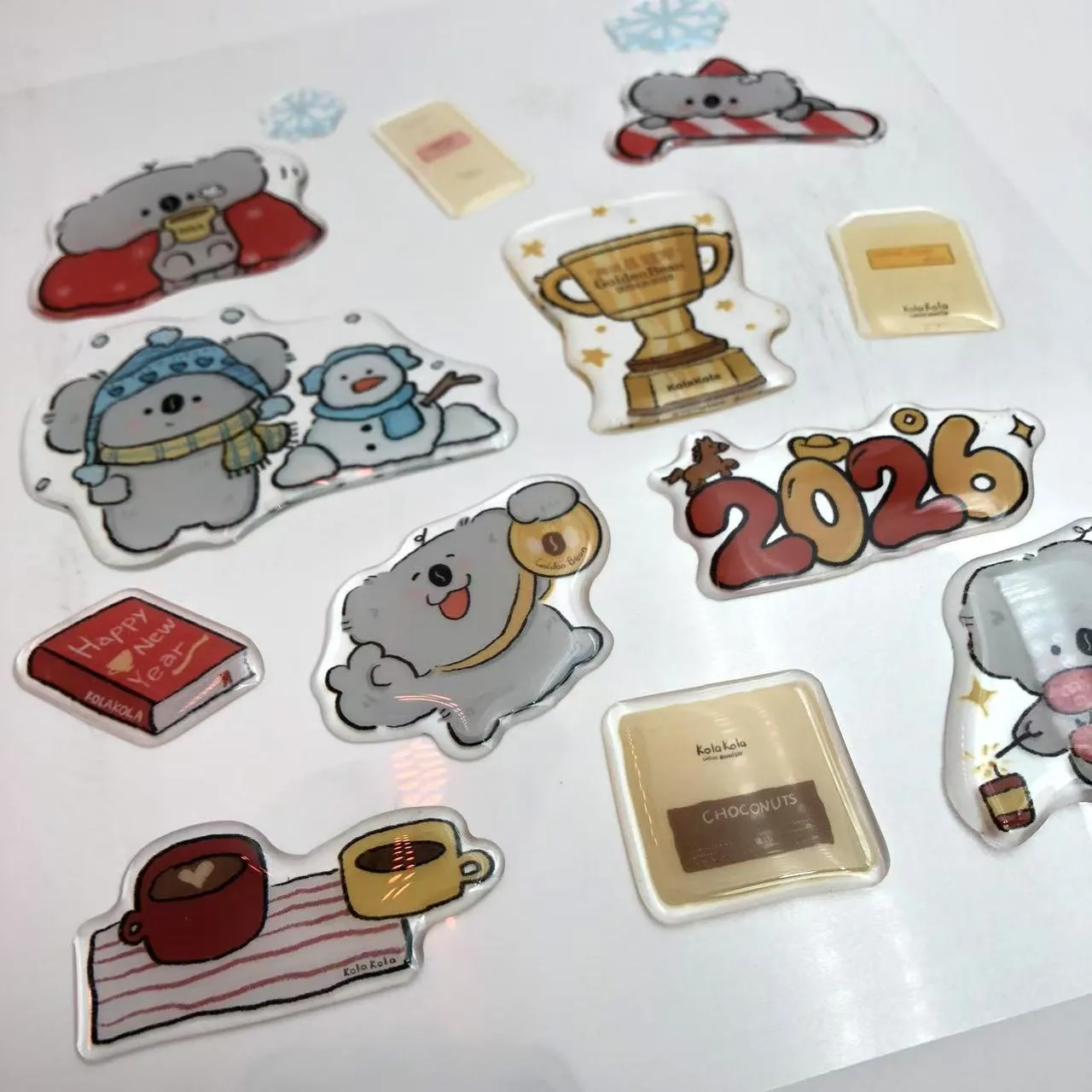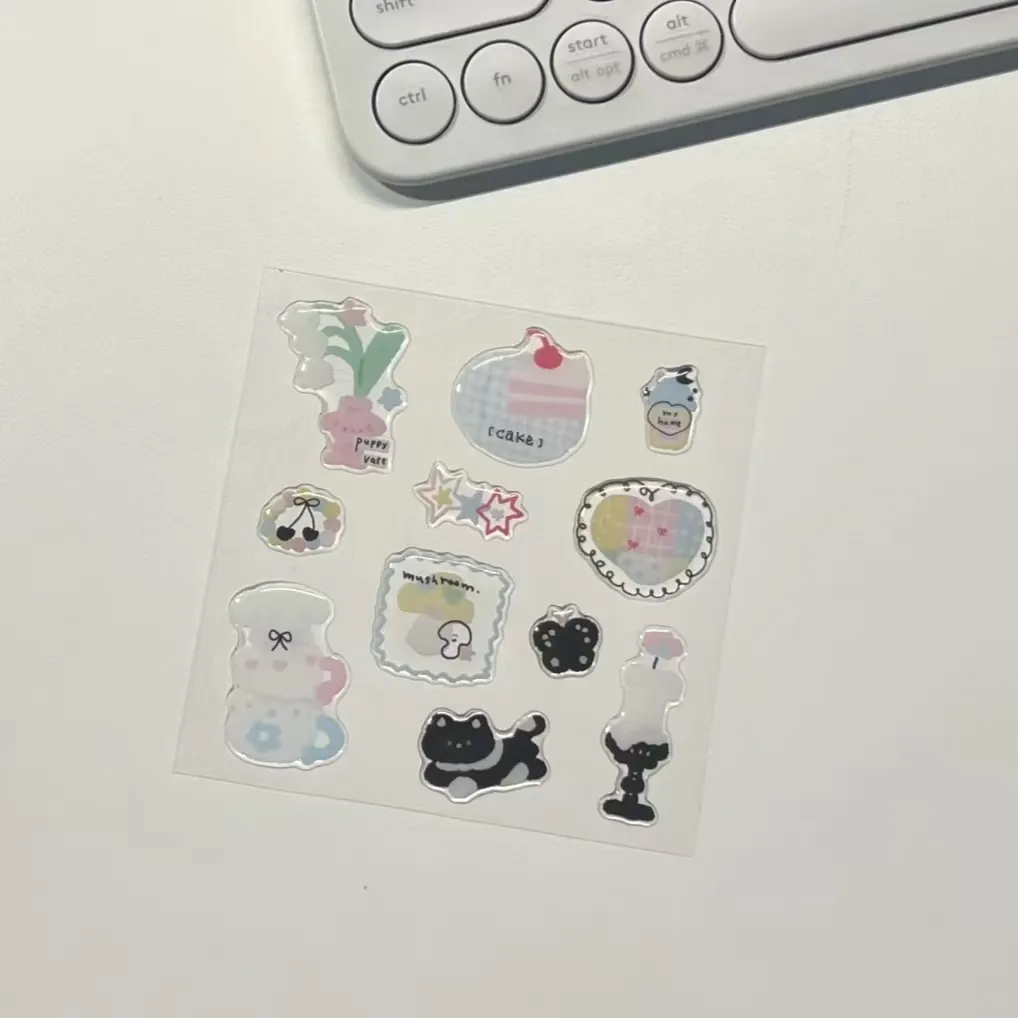 3D rajzfilm epoxigyanta matricáktestreszabott 3D matricák rajzfilm témájú mintákkal. Mindegyik matrica egy nagy átlátszóságú epoxigyanta réteggel van bevonva, amelyet csepegtetős ragasztási eljárással kikeményítenek, hogy telt, sima és rugalmas, megemelt textúrát hozzon létre.