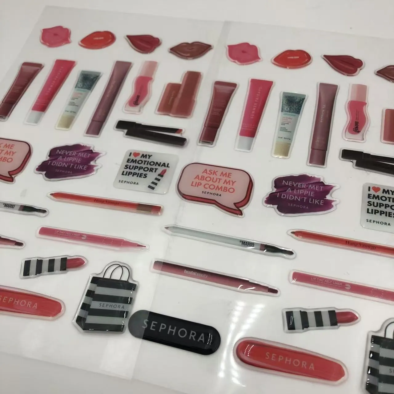 A hagyományos lapos matricákkal ellentétben ezek a matricák vízállóak, karcállóak és fakulásállóak. Környezetbarát anyagokból készültek, és eltávolítható ragasztóval vannak alátámasztva, így hosszantartó tapadást biztosítanak az olyan felületeken, mint az írószerek, játékok, csészék és falak, és lehúzhatók anélkül, hogy maradványokat hagynának vagy károsítanák a tárgyakat.