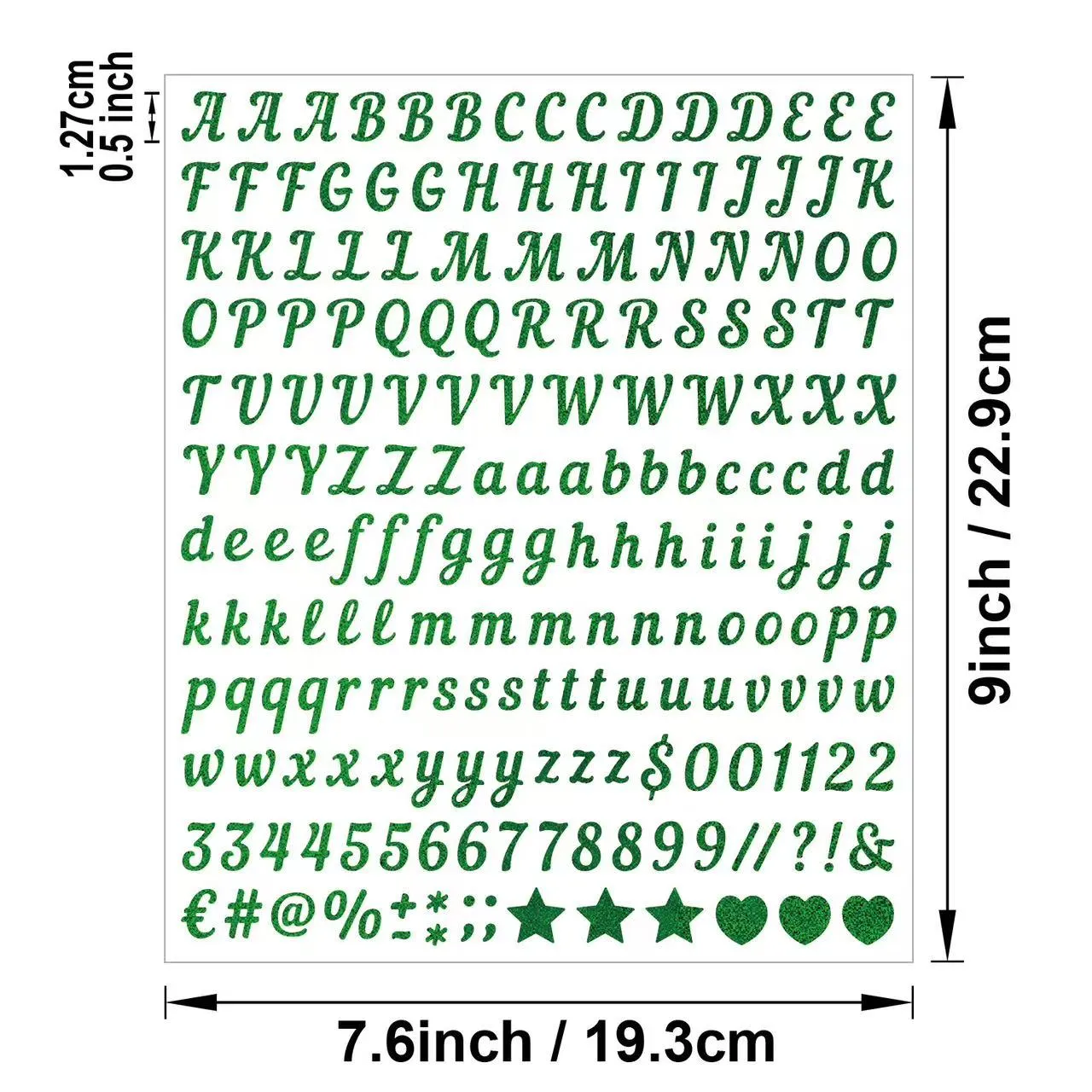 26 nagybetűs angol betűből és 0-9 számból álló teljes készletet tartalmaz, valamint alapvető szimbólumokat, amelyek lehetővé teszik a szavak, nevek, számok stb. betűzésének ingyenes kombinációját. Különféle forgatókönyveket fed le, például naplódíszítést, partitéma szavakat, ajándékdíszítést és írószer barkácsolást, többféle használati igény kielégítését egyetlen matricával.