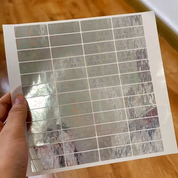 2.Lézer színű hologram-lemezkészítő technológiával és szerszámvágó replikációs technológiával készül. A címke egyedi lézermintákat mutat be, amelyeket szabad szemmel történő megfigyeléssel vagy nagyító eszköz használatával lehet azonosítani vagy hamisként azonosítani a belső gravírozott funkciók megtekintéséhez. A lézeres lézer-visszajelző címkék különböző márkáinak mintái eltérőek, és testreszabhatók.