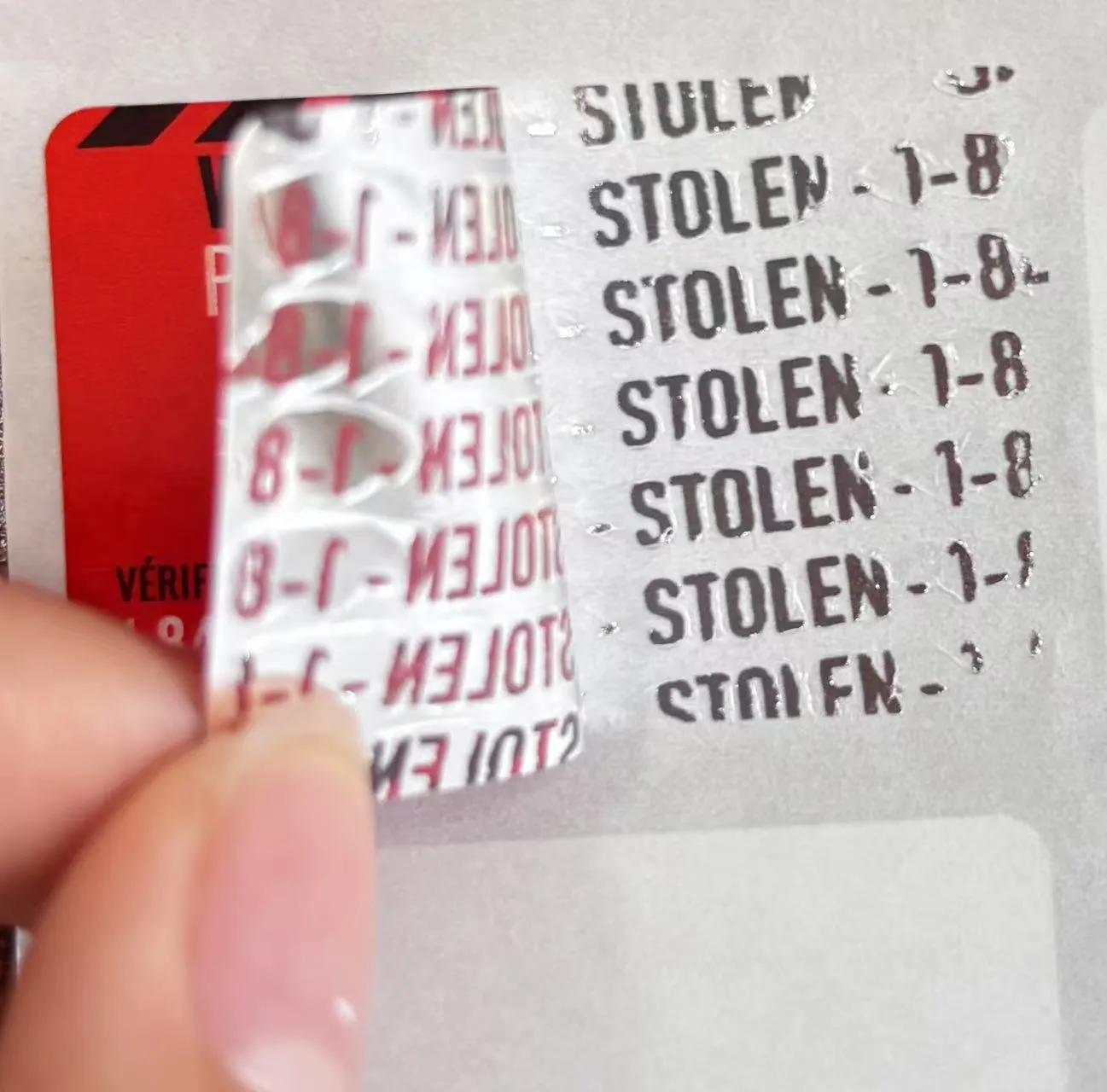 3.Ez egyidejűleg az ujjak elleni címke is. A címke megnyitásakor egy adott mintát vagy szöveg marad az alsó rétegen , jelezve, hogy a címkét kinyitották, és megakadályozzák annak újrahasznosítását. Például, miután megnyitották, akkor megjelenítheti a "nyitott" szavakat vagy a márka-specifikus mintát.