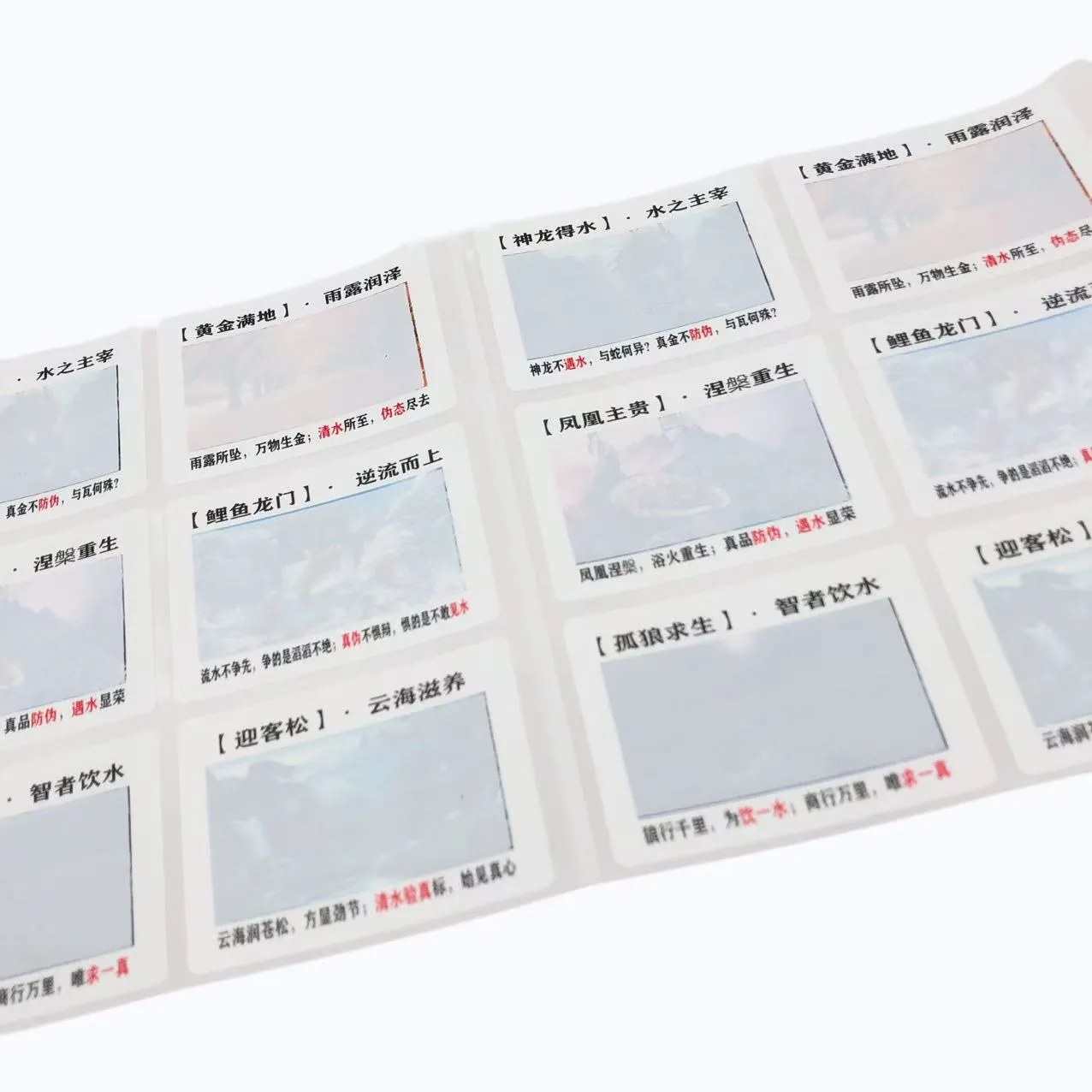 Egy apró vízcseppnyire van szükség ahhoz, hogy aktiválja a címke reakcióját. A könnyű és hordozható címkék különféle formájúak, például kártyák és azonnali fotóstílusú nyomatok készíthetők.JOJO csomagtestreszabási szolgáltatásokat nyújt, rajzfilmmintákat, márkalogókat, promóciós tartalmakat stb. nyomtathatunk a címkékre. Ideálisak ünnepi üdvözlőlapokhoz, gyermekeknek szóló oktatási játékokhoz, márkamarketinghez, hamisítás elleni küzdelemhez és egyéb alkalmazásokhoz.