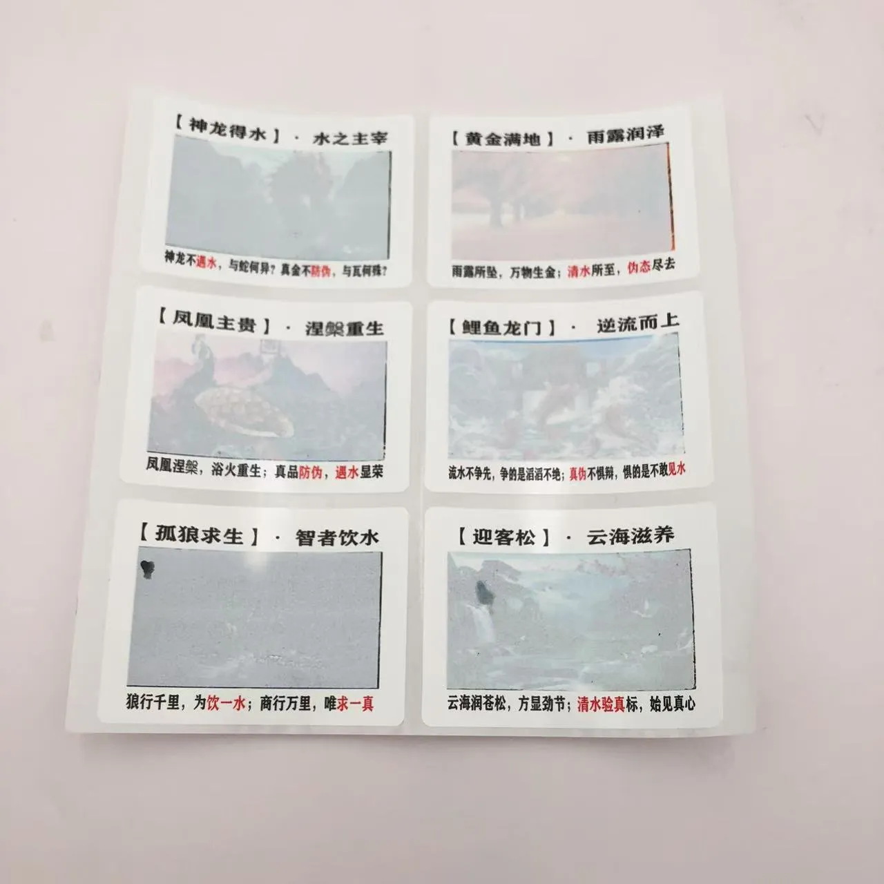 Színváltó címkék, vízérzékeny címkék, vízre érzékeny biztonsági matricák, vízszínváltó matricák, színváltoztatásra alkalmas vízérzékeny biztonsági címkék