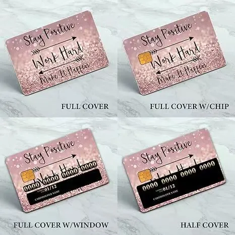 Hitelkártya borító matricákdekoratív és védőmatricák, amelyeket hitelkártyák felületére helyeztek el. Alkalmasak más hasonló méretű kártyákhoz is, például betéti kártyákhoz, szállítási kártyákhoz és kulcskártyákhoz.