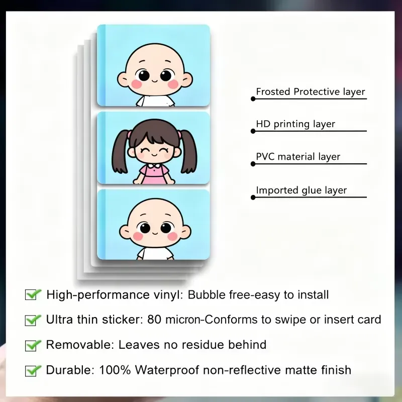V1: A legtöbb hitelkártya-borító matrica elsősorban PVC-ből készül. Ez az anyag a rugalmassága, a tartóssága és az élénk nyomatok megőrzésére való képessége miatt kedvelt.
