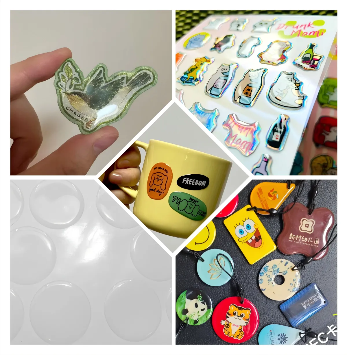 A3: Az epoxigyanta matricákat széles körben használják olyan iparágakban, mint például az elektronikai termékek márkalogói, az ipari berendezések figyelmeztető címkéi, az autóalkatrészek dekoratív matricái, a személyre szabott matricák ajándékokhoz és az orvosi eszközök azonosító címkéi.