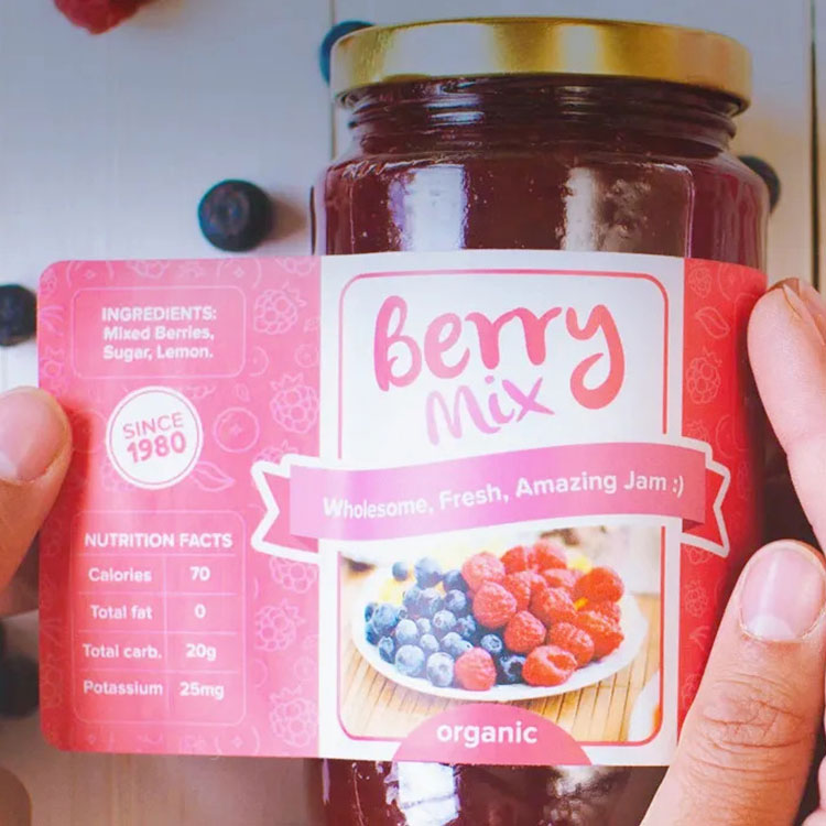 Jam címkéka lekvárosüvegek fontos részét képezik.Jam címkéknemcsak a termékinformáció közvetítő funkcióját látja el, hanem a csomagolás szépítésében és a márka imázsának javításában is szerepet játszik.JOJO csomag'slekvárcímkékkiváló minőségű anyagokat használjon, a kifinomult dizájnnal és fejlett nyomtatási technológiával kombinálva, hogy a címkék víz- és zsírállóak legyenek, miközben gazdag színeket és finom textúrákat mutatnak.