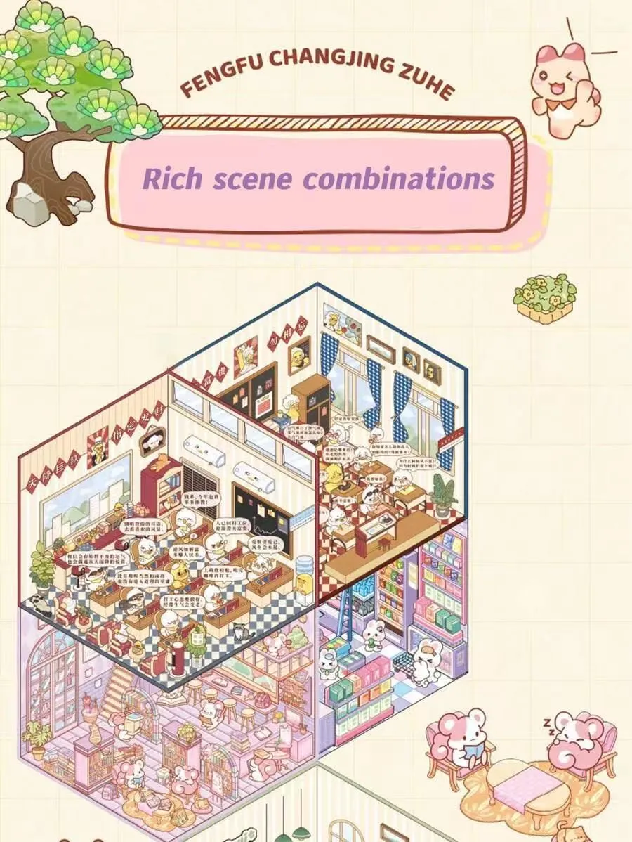 Ez a miniatürizált jelenetmatricás könyv minden kötetben 10 különböző témájú jelenetet tartalmaz, amelyek különböző stílusokat fednek le. Egyesíti a stresszoldást, a szórakoztatást, az értelmi fejlesztést és a dekorációs funkciókat, így alkalmas gyermekek, tinédzserek és fiatal felnőttek számára. Kiváló választás mindennapi szabadidős tevékenységekhez, szülő-gyerek interakcióhoz, fesztiválra ajándékként.