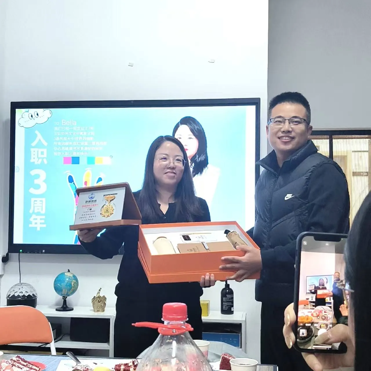 Csodálatos meglepetésként Gao főnök személyesen is átadott gyönyörű évfordulós ajándékokat Tomnak és Ellának, valamint Bellának. Ezek a különleges tokenek az elmúlt évek során nyújtott hozzájárulásuk őszinte elismerése, és a legjobb kívánságunkat fejezzük ki a vállalat további növekedéséhez.