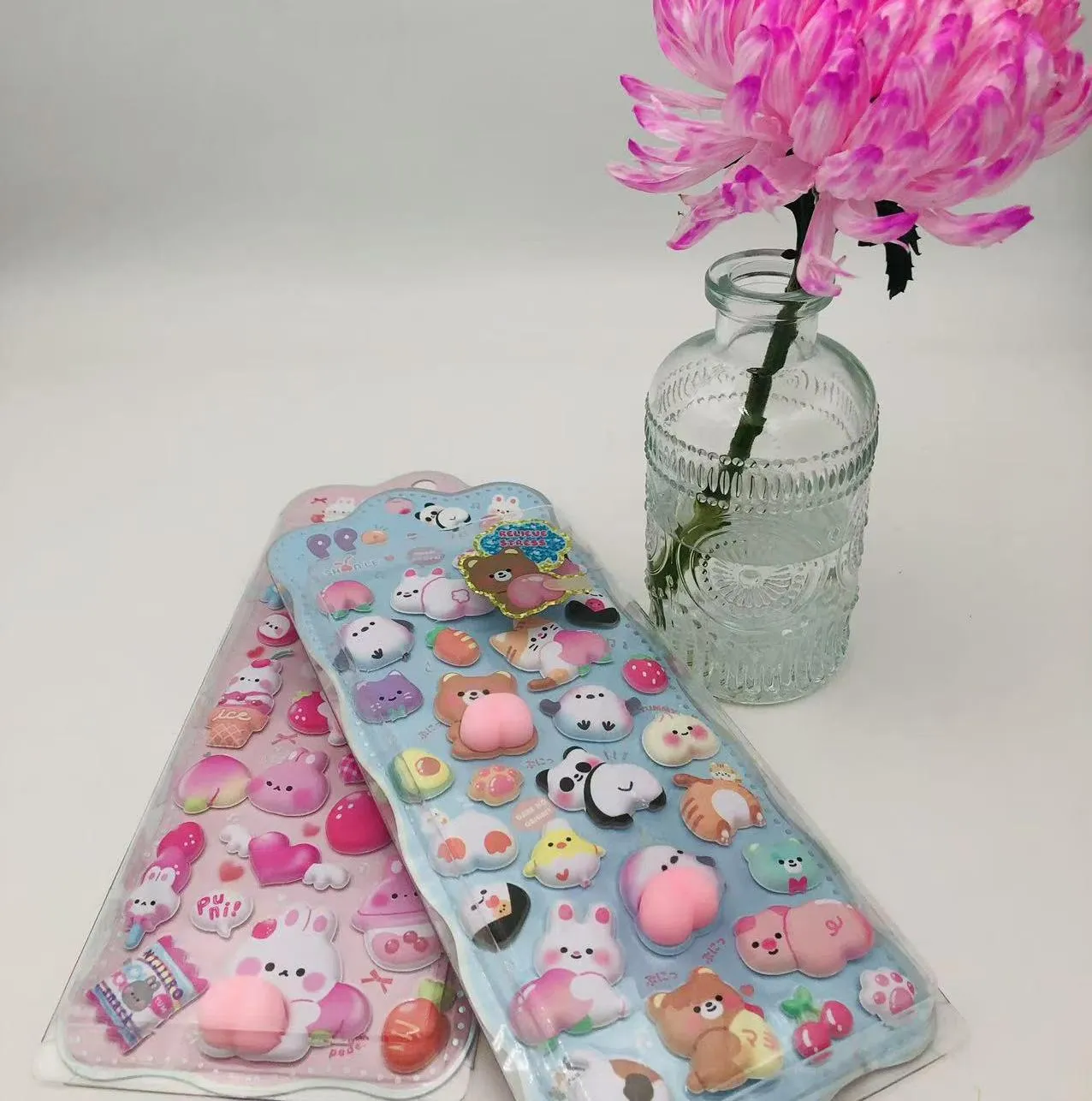 Lassú visszapattanású anyag: Ezek a matricák általában lassan visszapattanó habból, szilikonból vagy ragasztógélből készülnek. Amikor ujjaival megcsípi, megpiszkálja vagy megnyomja őket, lassan behorpadnak, majd fokozatosan visszapattannak. Ez a folyamat hihetetlenül stresszoldó, és arra késztet, hogy ismételten szorítsa és gyúrja.
