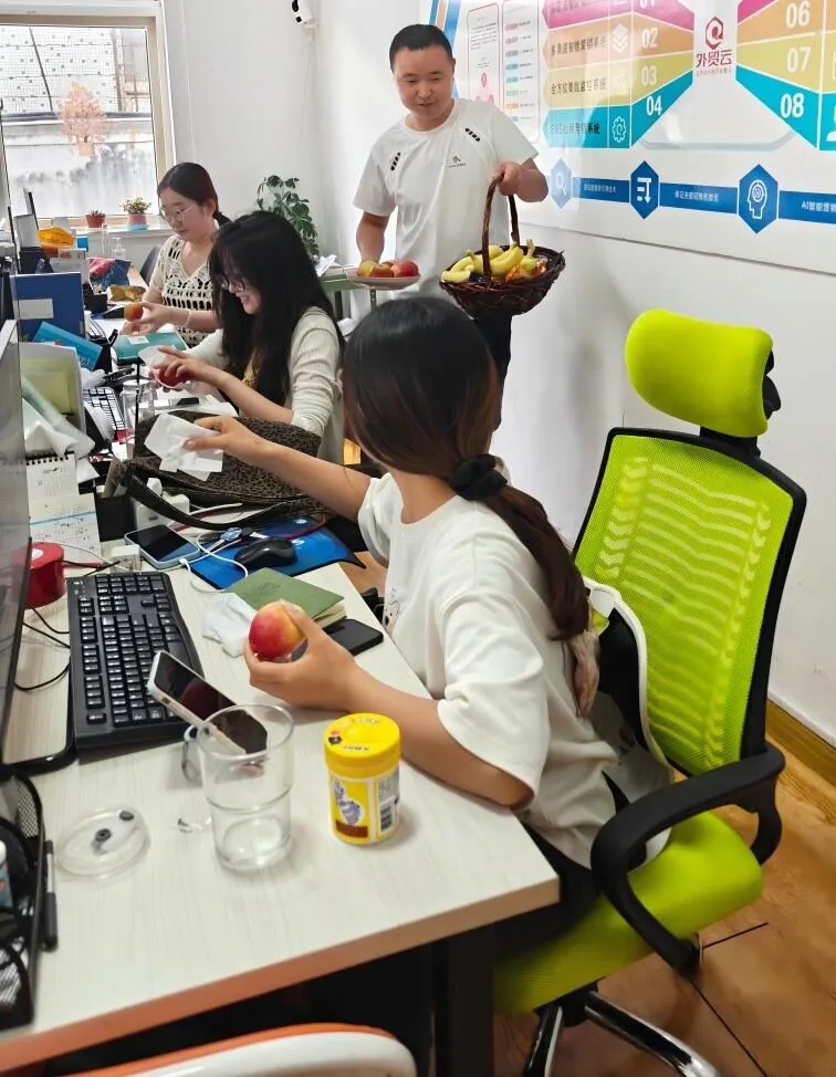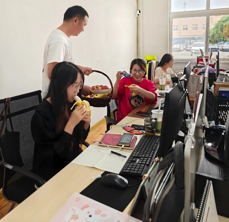 A friss gyümölcsök és a speciális snackek kombinációja a délutáni irodai időre "energia feltöltő állomássá" vált, és hozzáadja az édességet és a vitalitást a forgalmas munka ritmusához. Minden nap 15 órakor, az egyes osztályok délutáni teaterülete gyümölcs illatokkal tölti be. Az adminisztratív személyzet szállítmányokkal teli kosarakkal rendelkezik, és mozgatja köztük egy egyedi délutáni teaelosztási rendezvényt. A kosarakban a vörös almákat úgy rakják fel, mint a kis hegyek, a sárga banán ívelt, mint a félhold, és a mellette szépen elrendeznek, az egyedi diófélék, kekszek és energiaszárak csomagjai. Ezeket a friss alapanyagokat gondosan választják ki a kiegyensúlyozott táplálkozás biztosítása érdekében, miközben figyelembe vesszük a különféle ízeket is, és időben feltöltődnek a kimerült alkalmazottak számára.