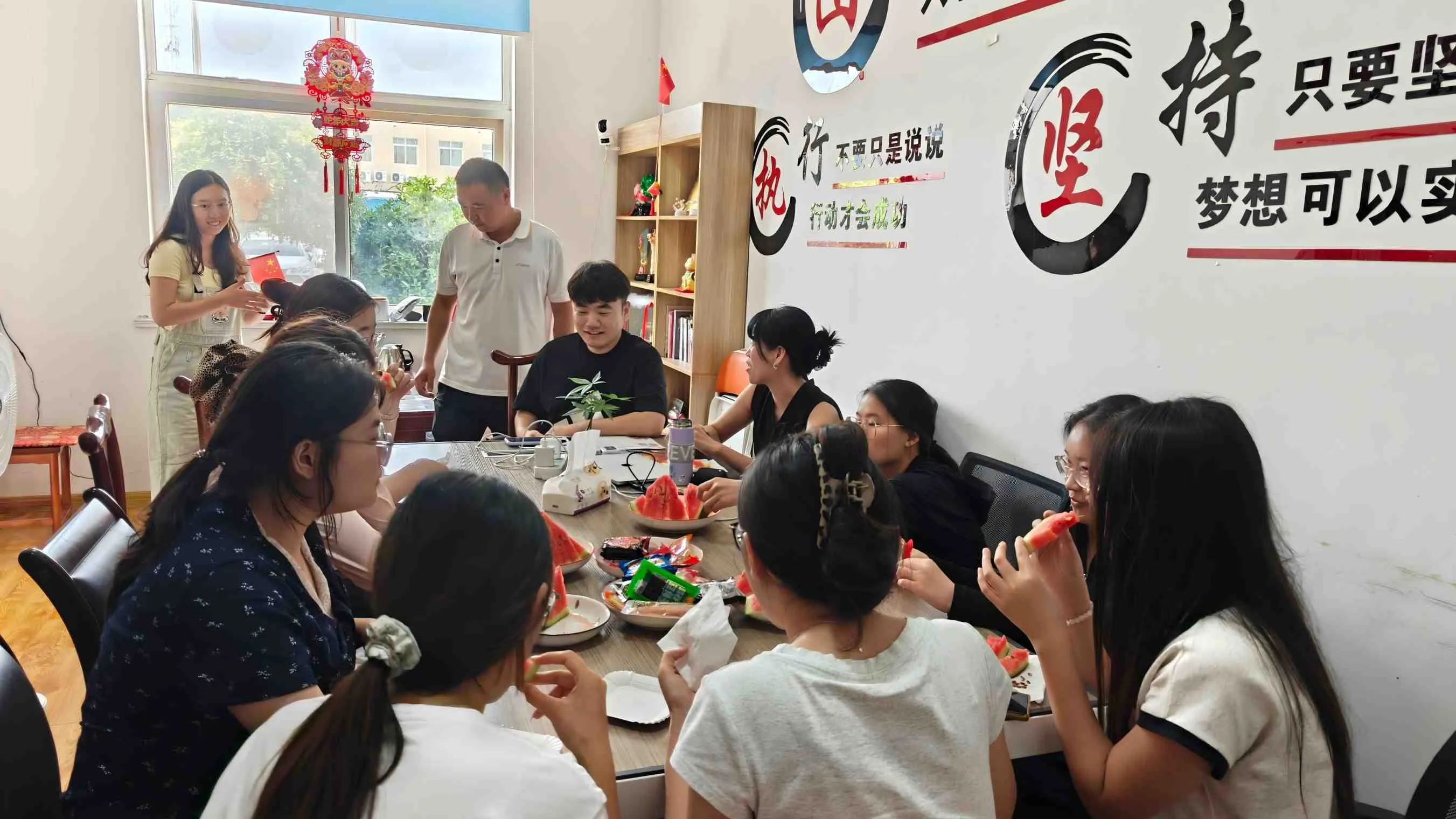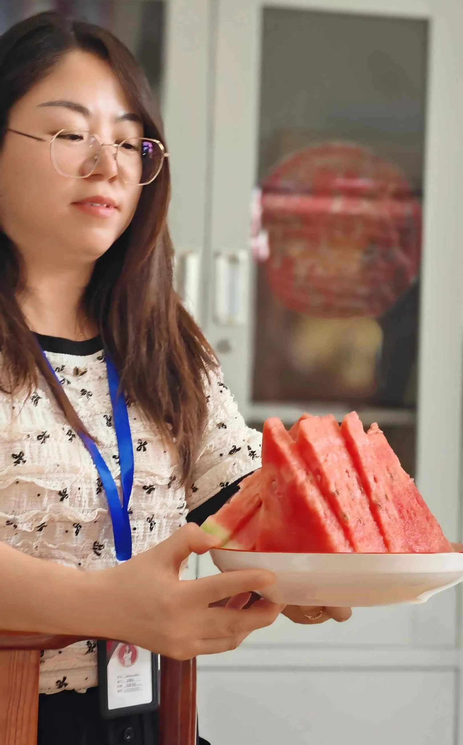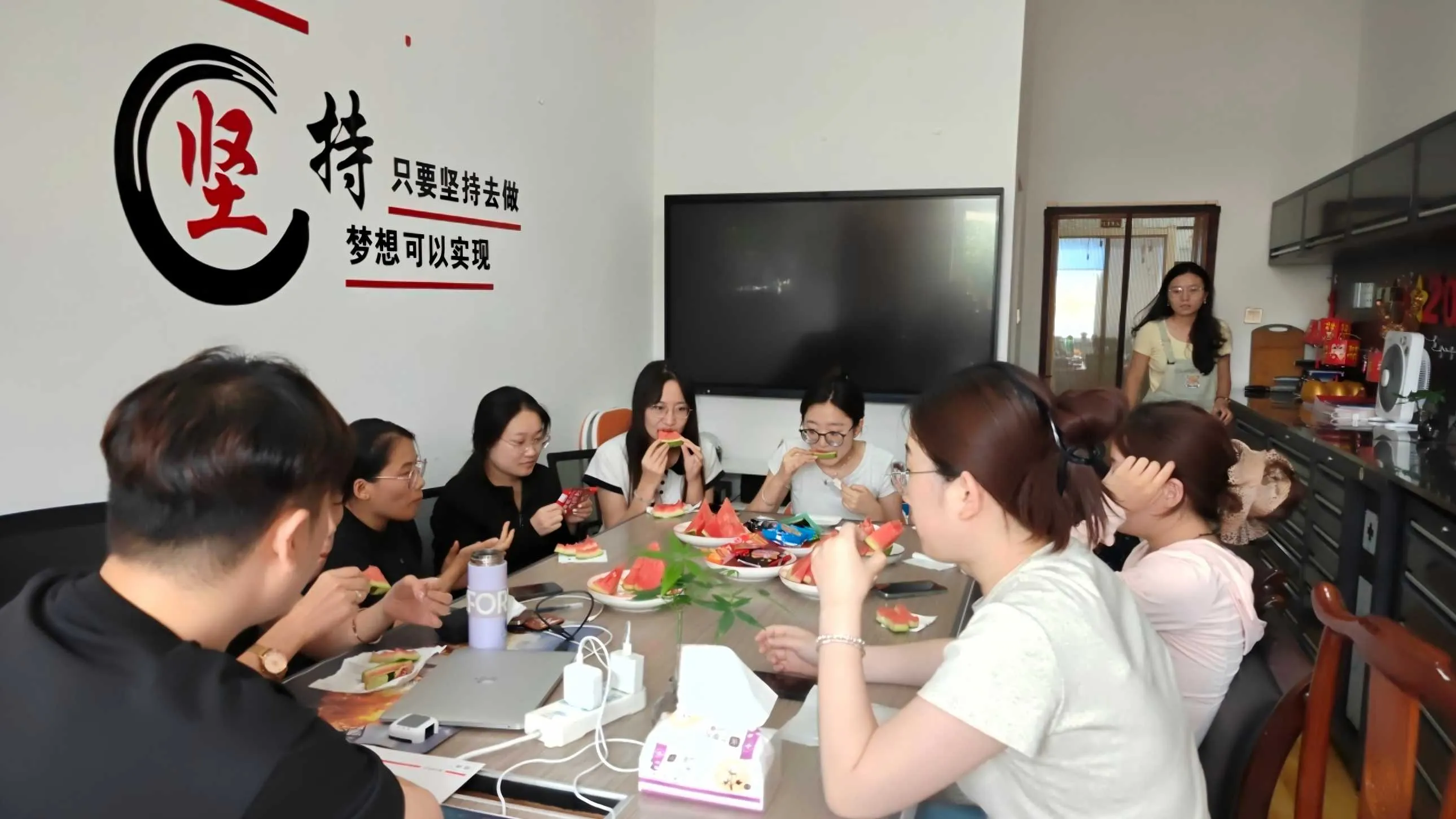 A rendezvény helyszínén különféle snackeket láttak el szépen, a ropogós dióféléktől, az édes szárított gyümölcsöktől kezdve a különféle kiváló süteményekig. A gazdag és változatos snackek mindenki különböző íz preferenciáinak felelnek meg. És a leginkább szemet gyönyörködtető elem a hűtőszekrényből a frissen kivett nagy görögdinnye volt. A görögdinnye zöld bőrét az élénkvörös hús körül csomagolták, és amint kinyitották, a gyümölcslé kiömlött, és egy édes aromája felé fordultak. Ez lett a legnépszerűbb "hűtési eszköz" a forró nyáron. A munkavállalók csoportokban ültek, kezükben tartva a görögdinnyét, és kóstolták meg a harapnivalókat, és a nyugodt csevegési hangok és a vidám nevetés folyamatosan emelkedett és esett. Az egész irodai terület tele volt az öröm légkörével.