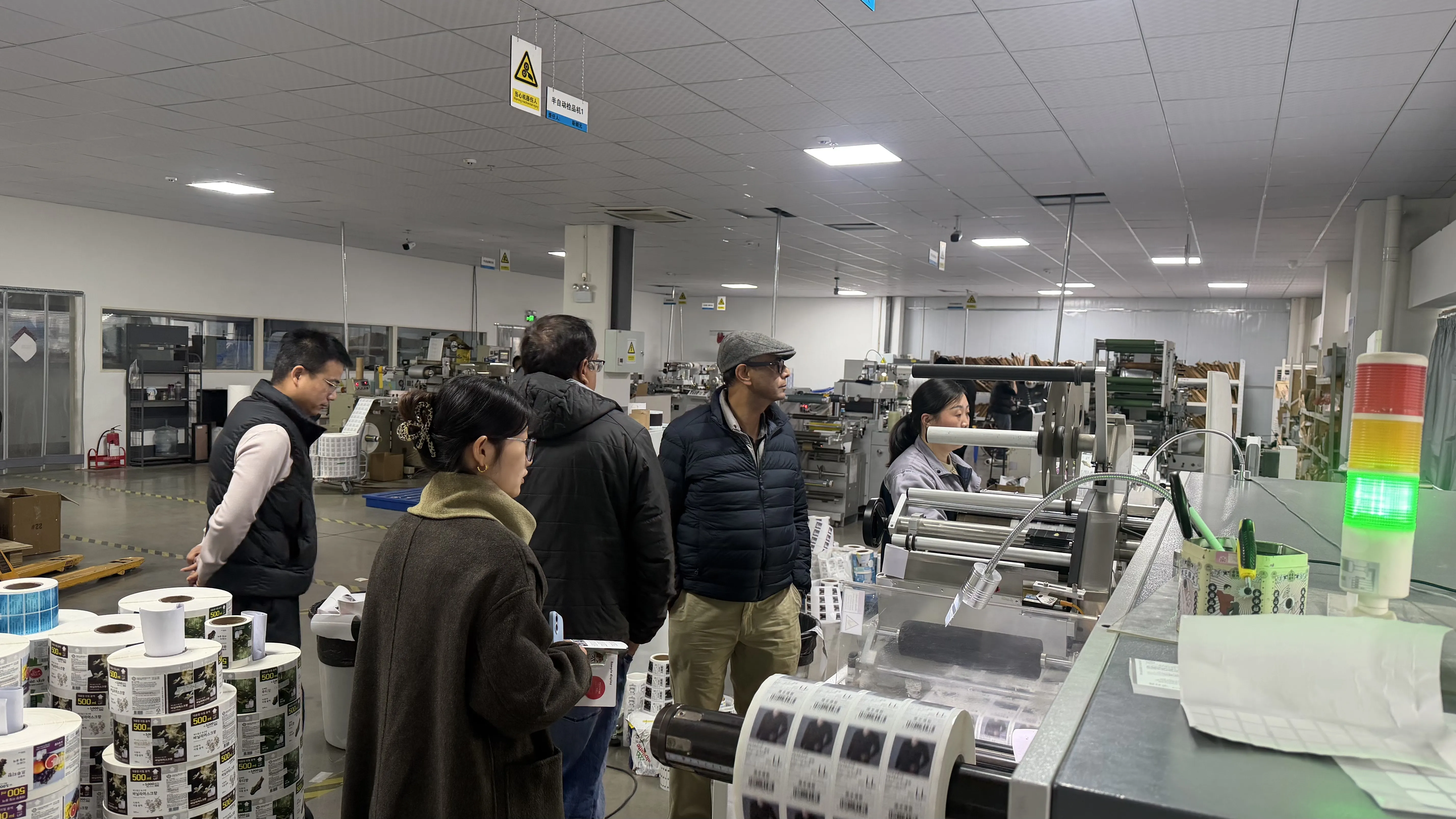 Az ügyfelek a fejlett nyomdai berendezéseinkre, a szabványosított gyártásirányítási rendszerünkre és a szigorú minőség-ellenőrzési folyamatunkra összpontosítottak, és részletesen kérdezték az olyan alapvető kérdéseket, mint a termékanyagok, a gyártási hatékonyság és a testreszabási kapacitás. A kísérő személyzet türelmesen válaszolt, és a helyszínen bemutatták a különböző címkeminták gyártási folyamatát és késztermék hatását.