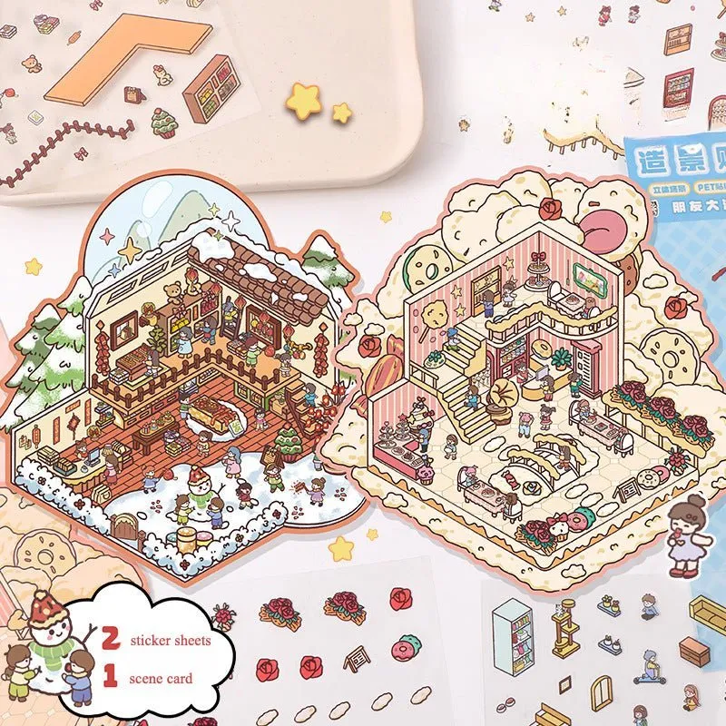 A gyerekek szabadon kombinálhatják a különféle jeleneteket, például a konyhát, a hálószobát és a kertet, hogy saját álomházaikat építsék, akárcsak a blokkokkal. A matricák gyorsan enyhíthetik a stresszt olyan interaktív módszerekkel, mint például a beillesztés és a rakás.