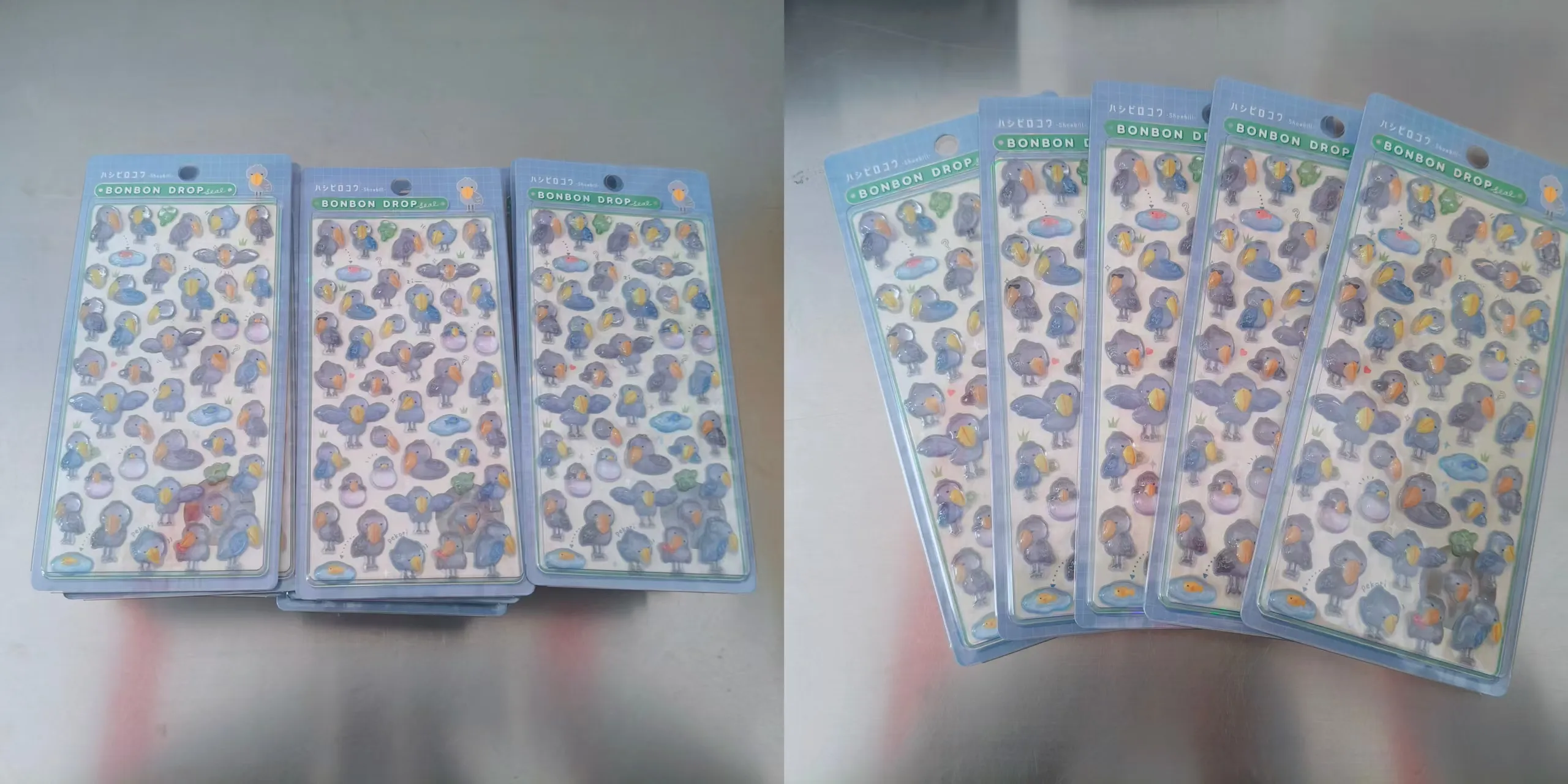 Minőségellenőrző csapatunk minden matricát gondosan megvizsgált, hogy megbizonyosodjon arról, hogy a dombornyomott buborékfólia sértetlen, és a ragasztós hátlap sima. Minden megkapott matricát egyenként csomagolunk, így könnyen számolhat és tárolhat.