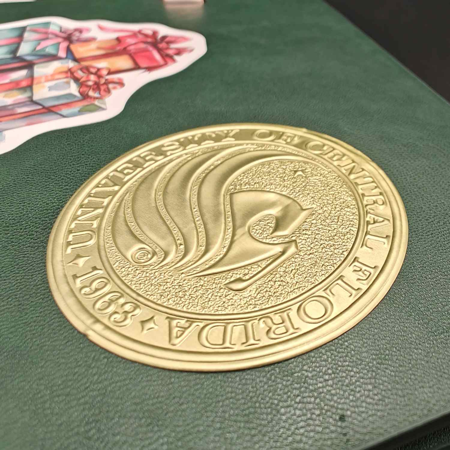 A kerek fóliás dombornyomott borcímke egy kör alakú aljzatú öntapadó címke, ahol a fémfóliát melegsajtolásos technológiával viszik az anyag felületére, majd homorú-domború formákkal préselik ki a dombornyomott mintákat. Mint egy miniatűr érem, a címke fémes csillogása és háromdimenziós tapintású tapintása azonnal fel tudja emelni egy teljes borosüveg prémium érzetét, miután finoman ráragasztják a palack testére.