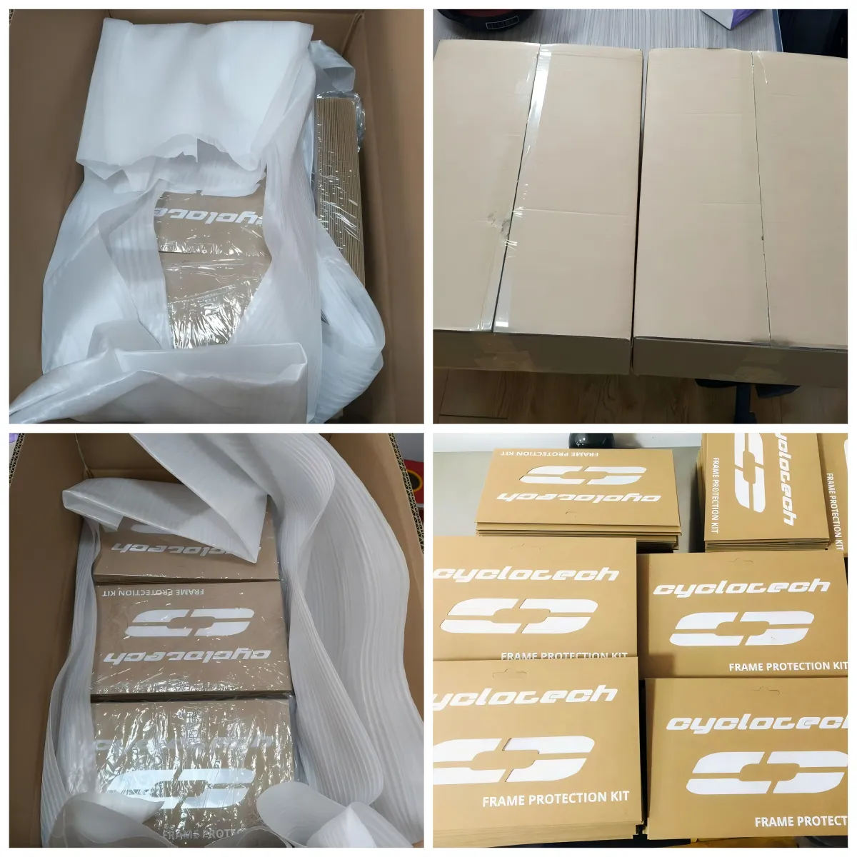 Az alap átlátszó kialakítás támogatja az egyedi logónyomtatást vagy a színillesztést (OEM/ODM elérhető). Személyre szabott igények kielégítése a védelmi funkció fenntartása mellett. Kerülje el a drága költségeket ezzel a tartós védőkészlettel. A könnyű és vékony kialakítás nem jelent extra terhet a vázra, így a kerékpár teljesítménye változatlan marad.