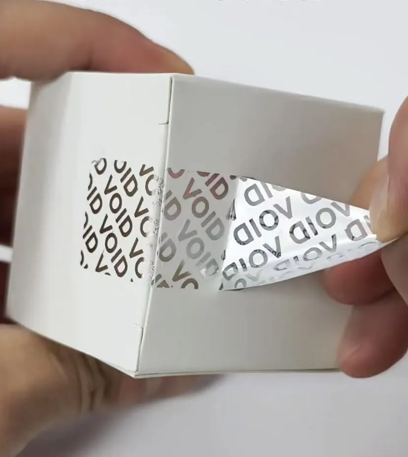 A void ellenszenv-ellenes címkék nagy hatékonyságú, a JoJo Pack által aprólékos termékek nagy hatékonyságú, a Counterfing Címke termékek. Különleges anyagokból és folyamatokból készülnek, amikor a címkét lehúzzák, egy kiemelkedő "üreg" jelet hagynak a mellékelt tárgy felületén, amely figyelmeztetésként szolgál, hogy a terméket valószínűleg megsértették vagy kinyitották.